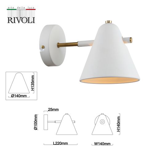 Бра настенное Rivoli Chelsea выполнено из металла, гальванизировано в белый цвет, имеет декоративные части золотого оттенка. Конусообразный плафон бра направлен вниз, что обеспечивает яркую подсветку для чтения, подсветку столешницы, подсветку прикроватной тумбы. Лампа для светильника-бра Chelsea – Е14 40 Вт. Освещаемая площадь бра – до 3 м2. Бра в стиле лофт, бра в стиле модерн Rivoli Chelsea – выбор профессиональных дизайнеров интерьеров!