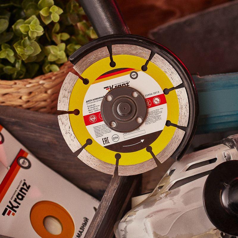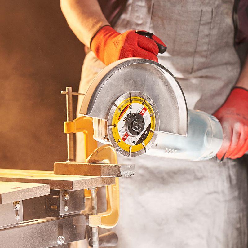 Диск состоит из стального корпуса и алмазных сегментов, с высотой рабочей кромки 10 мм, что обеспечивает эффективную резку материала и долгий срок службы самого диска.