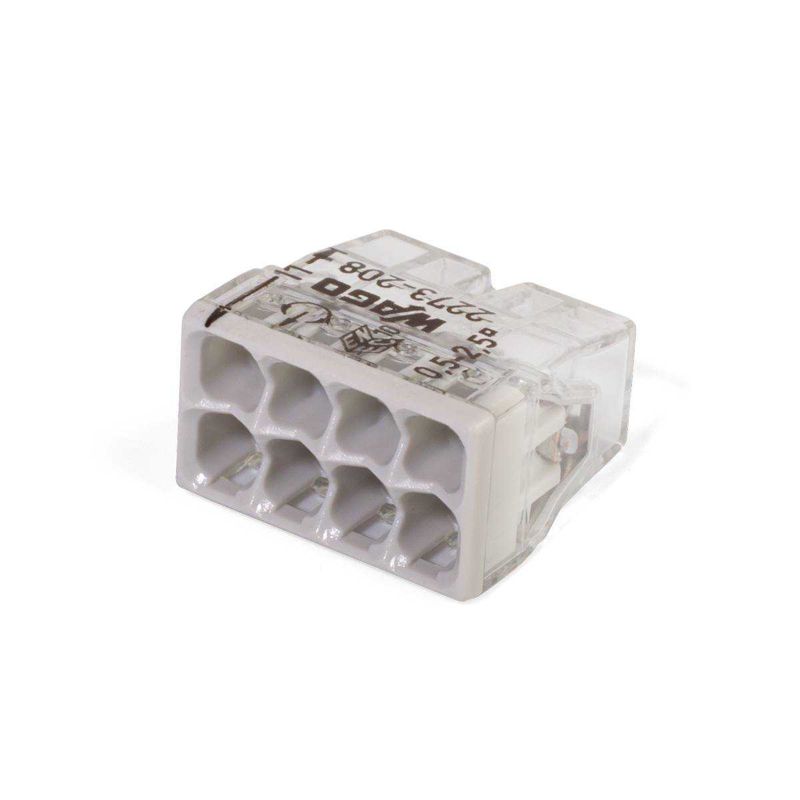 • Клеммы в прозрачном корпусе, без контактной пасты, предназначены для подключения одножильных/ многожильных медных проводников (до 3-го класса гибкости)