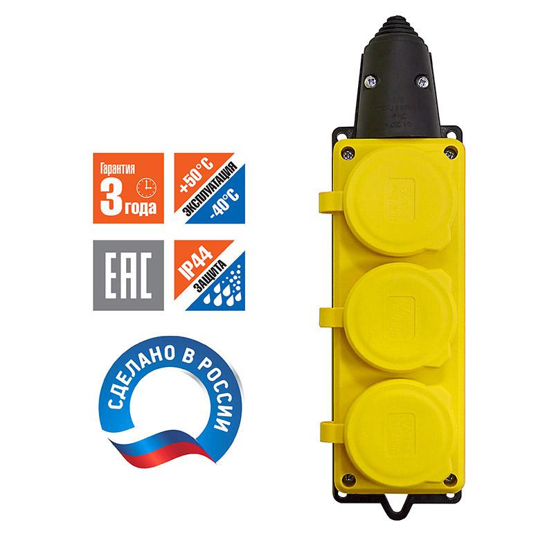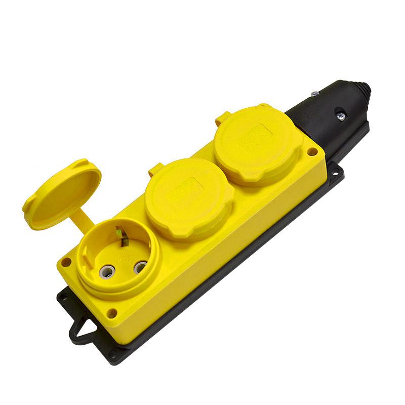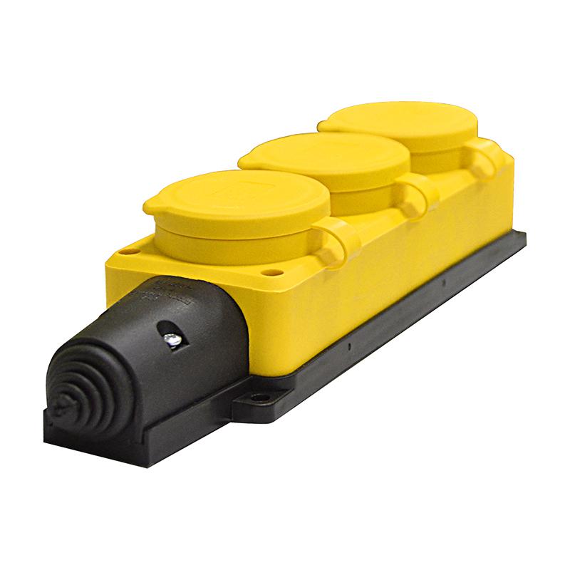 Колодка удлинителя 3-м 1ф с заглушками компакт каучук желт. Universal 3083