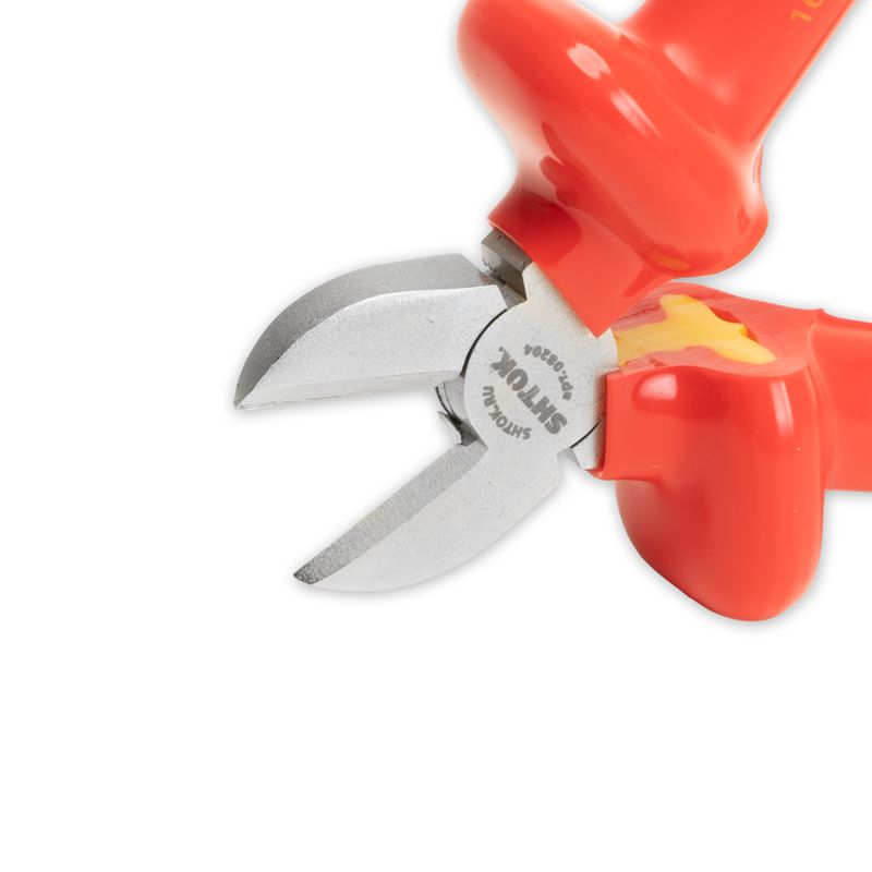 Рукоятки из двухслойного пластизоля обеспечивают надежность удержания диэлектрических боковых кусачек 1000В 160 мм SHTOK 08204 во время работы.