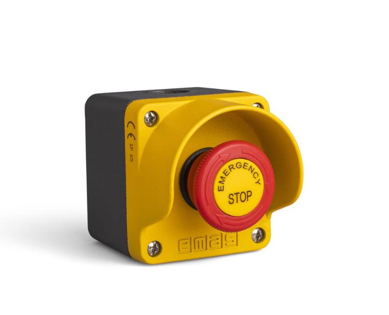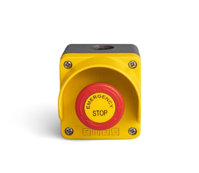Кнопочный пост управления в металлическом корпусе с аварийной кнопкой "Грибок EMERGENCY" с фиксацией. Ударопрочный пластиковый корпус армированный стекловолокном - 3 различных типа корпусов. Цветные кнопки. Водонепроницаемый корпус. Рабочая температура: -5/+125 °C. Класс защиты: IP 65.
