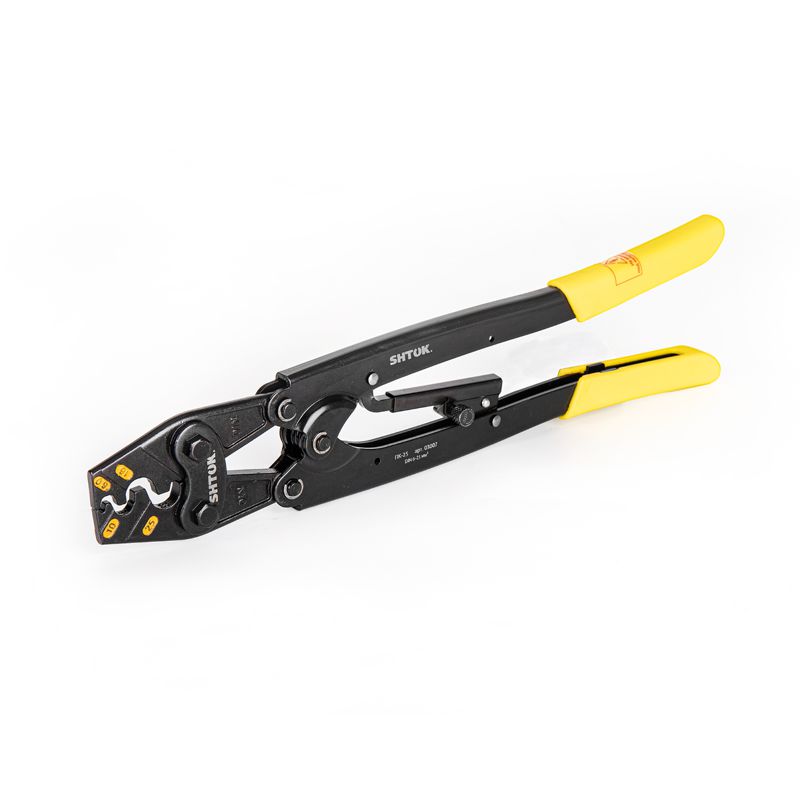 Особая конструкция ручных пресс-клещей SHTOK ПК-25 03007 плотно зажимает кабель, не давая ему ""выйти"" из рабочей области.