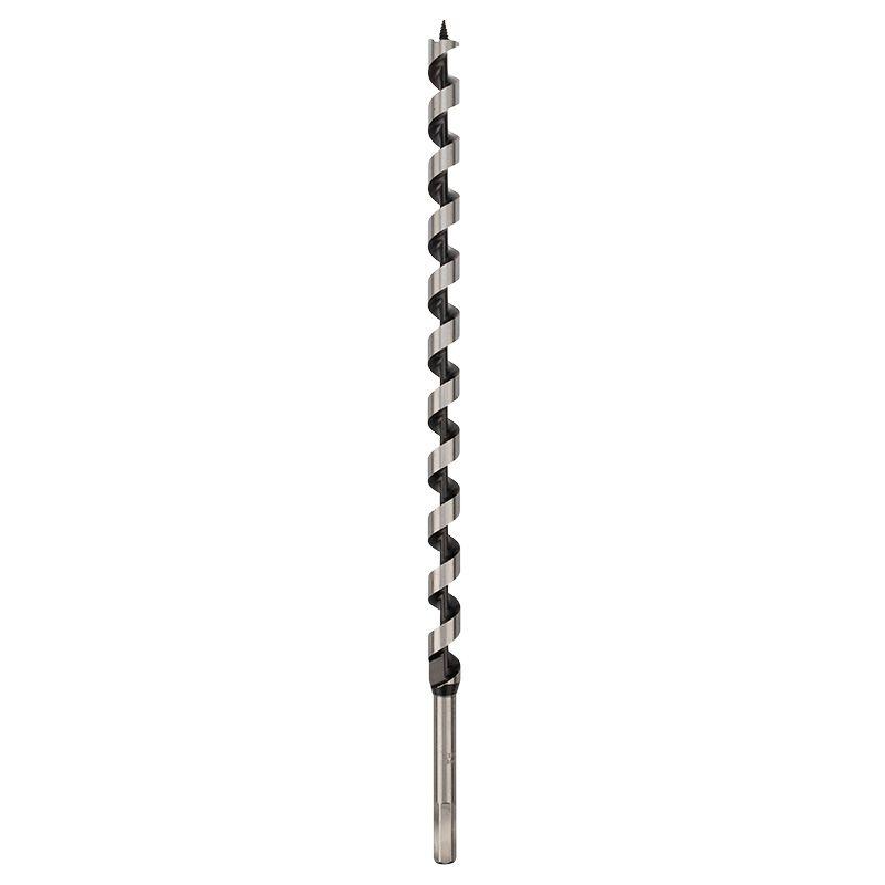 Сверло выполнено из закаленной инструментальной стали, что повышает износостойкость и долговечность инструмента. Центрирующее острие на конце рабочей части позволяет удобно засверливаться в материал и уменьшает осевую нагрузку, шнековая спираль Левиса обработана до зеркального блеска, из-за чего отверстия получаются гладкими, а стружка отводится более эффективно. Хвостовая часть, выполненная в виде шестигранника, надежно фиксирует сверло в патроне инструмента.