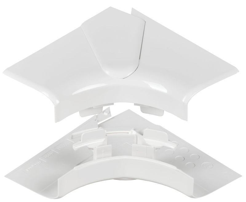 Угол включает в себя два элемента — для верхней и нижней частей кабель-канала, между которыми защёлкивается крышка. Цвет: белый.