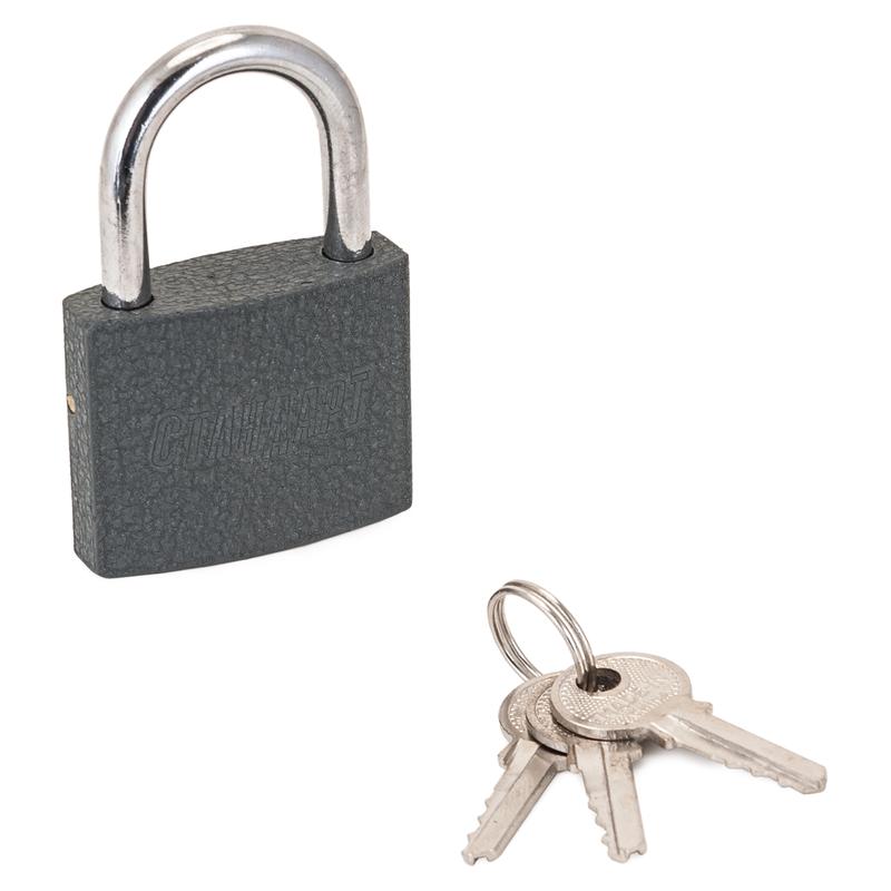 Замок навесной цилиндровый общего применения. Материал корпуса - чугун. Закаленная стальная дужка диаметром 5 мм; проем дужки - 21 мм по высоте и 21 мм по ширине. Габариты корпуса - 38х32 мм. Комплектуется 3 английскими ключами. Замок имеет функцию автома