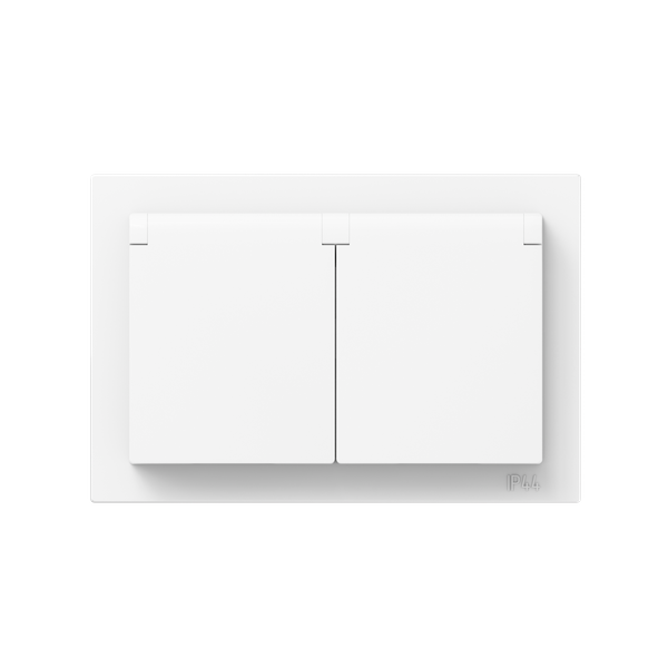Розетка 2-м СП Эпика 16А IP44 с заземл. защ. шторки с рамкой с крышками механизм бел. EKF UP1-SOW-211-44