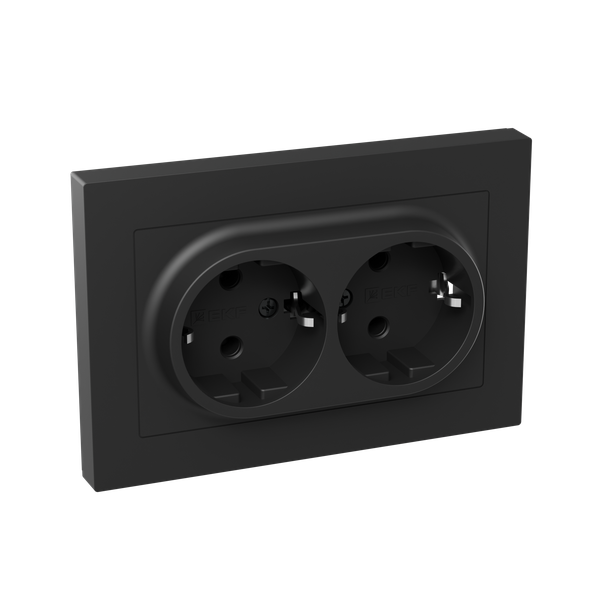 Розетка 2-м СП Эпика 16А без заземл. без защ. шторок с рамкой механизм черн. EKF UP1-SOB-200