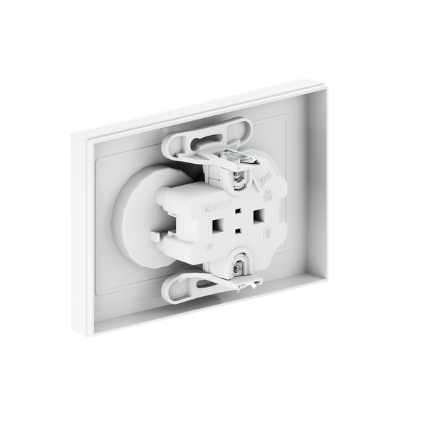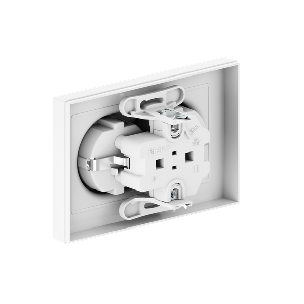 Розетка 2-м СП Эпика 16А с заземл. без защ. шторок с рамкой механизм бел. EKF UP1-SOW-210