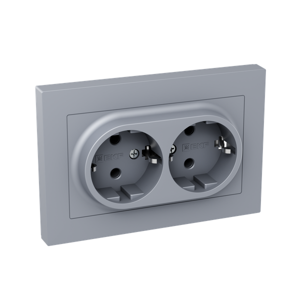 Розетка 2-м СП Эпика 16А с заземл. без защ. шторок с рамкой механизм алюм. EKF UP1-SOA-210